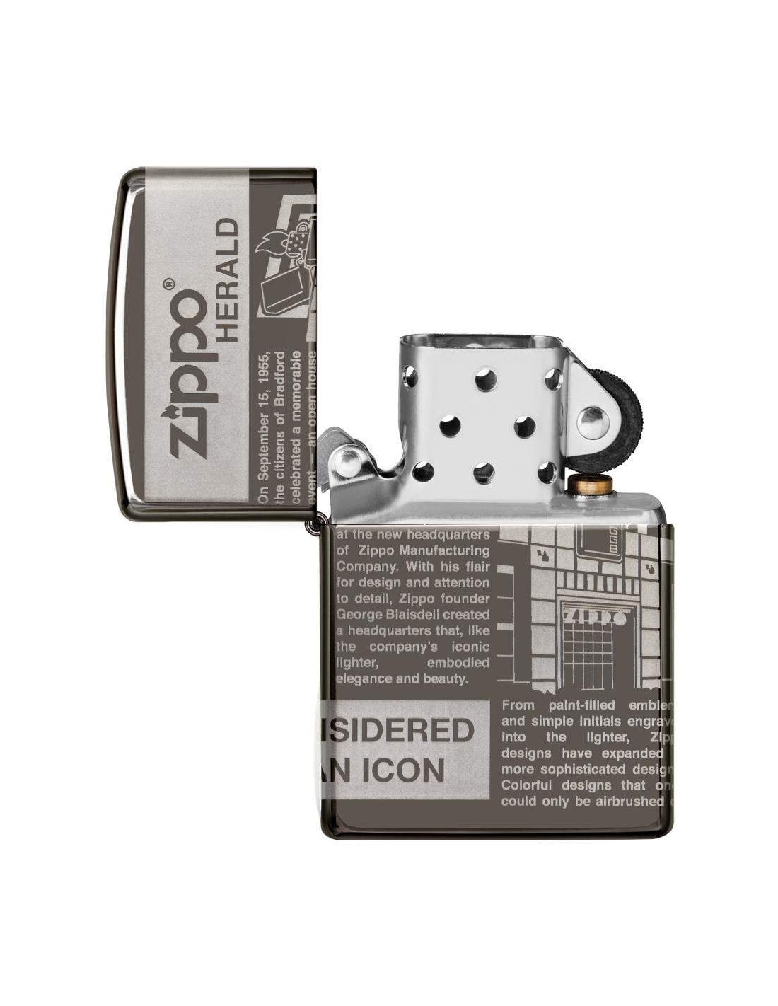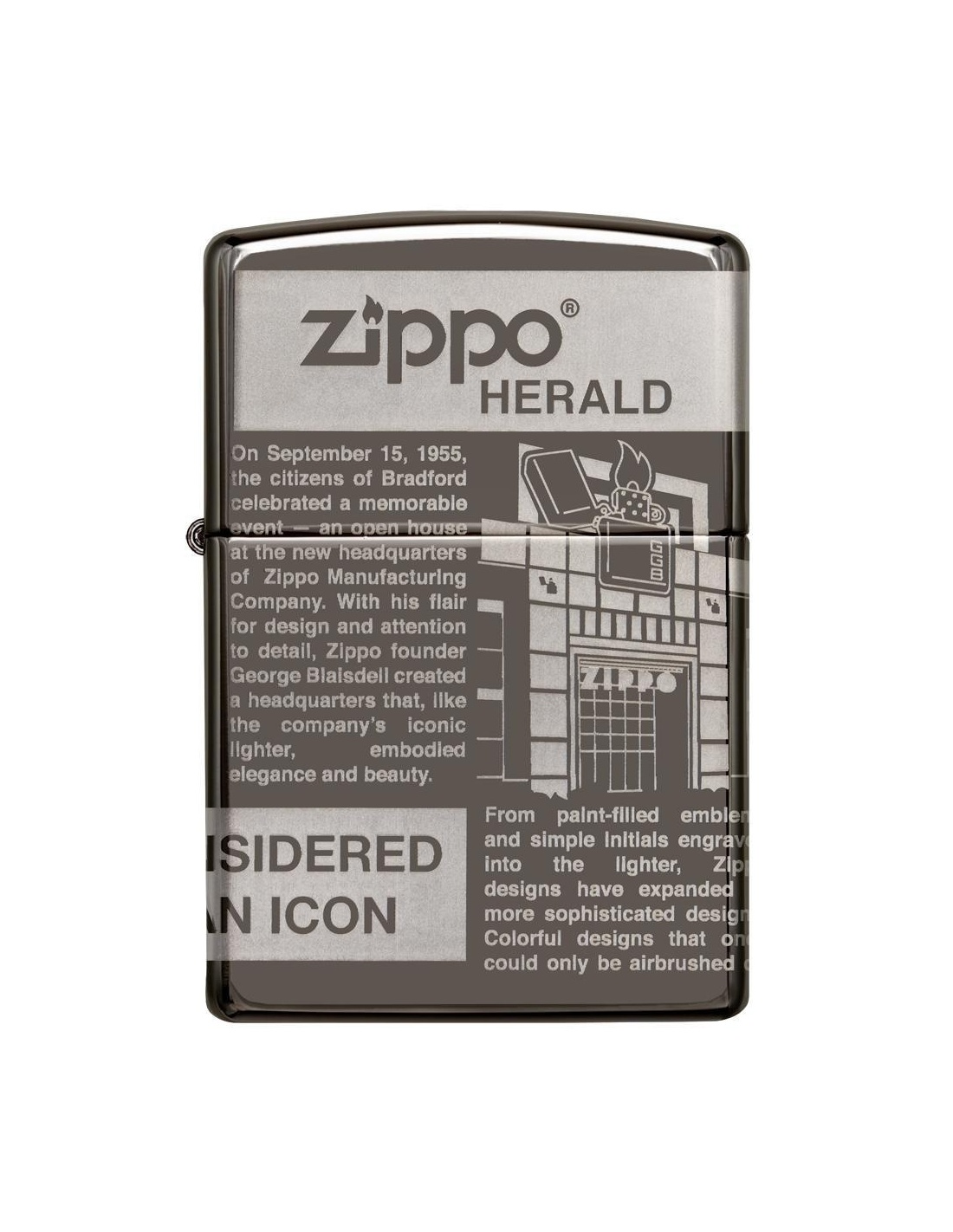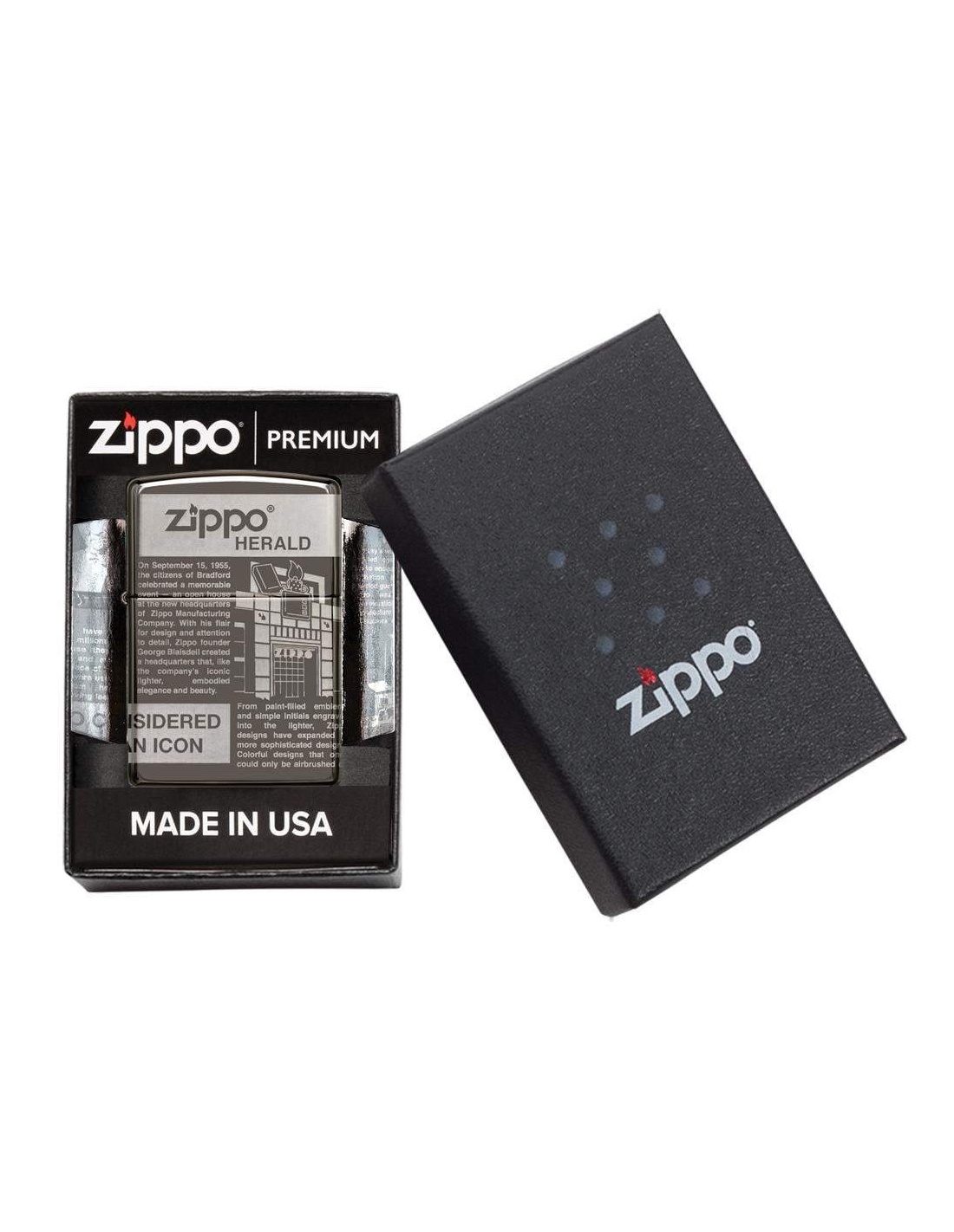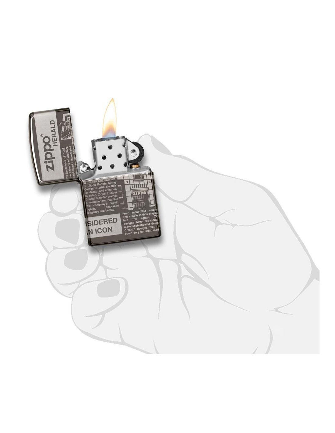 A Zippo Newsprint Design 49049 öngyújtó az Egyesült Államokban gyártott termék, a Pennsylvania-ban levő híres badfordi Zippo Manufacturing Company cég által. A Zippo öngyújtók kiváltképpen a Második Világháború idején váltak népszerűvé, amikor kizárólag az amerikai hadsereg részére gyártották őket és jelen pillanatban a Zippo öngyújtó, egy amerikai katona alapfelszereltségének tartozéka. A 60-as években a koncertek kedvelői Zippo gyújtókat gyújtottak meg és emeltek a magasba, a színpadon levő művészek üdvözlése végett, ezt a gesztust ”Zippo Moment”-ként emlegették. A Zippo öngyújtók újratölthetőek, időállóak és kedvezőtlen szeles feltételek mellett is meggyújthatóak. Ma már a Zippo öngyújtókat több mint 100 országban forgalmazzák és számos lelkes gyűjtő részére gyűjteménydarabbá vált.