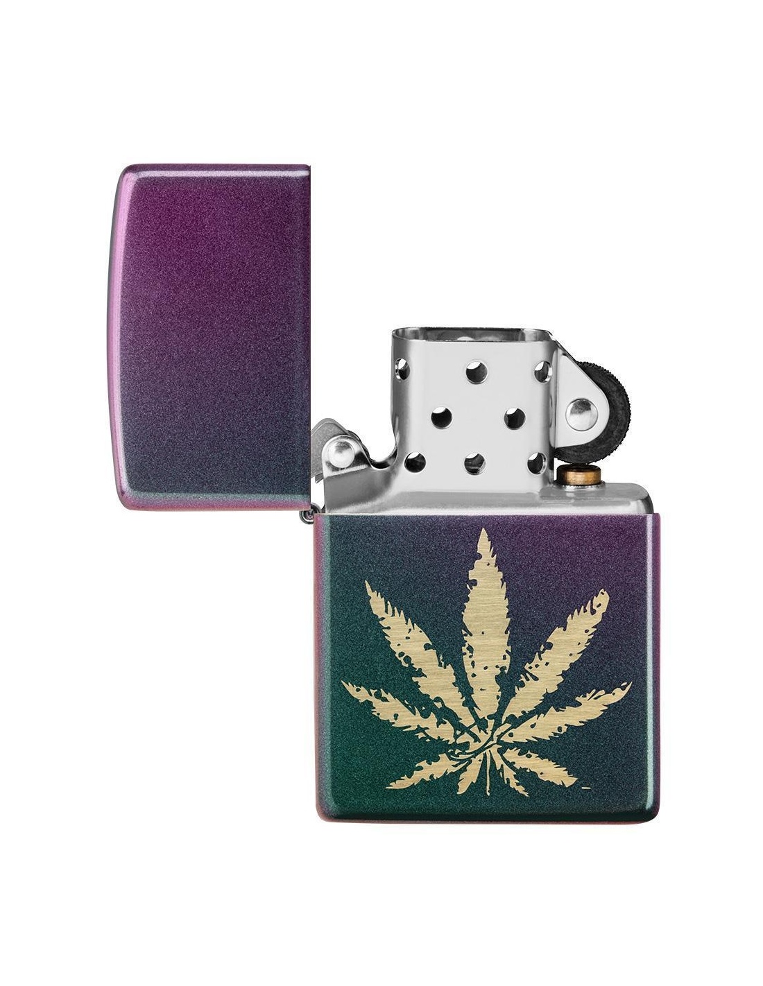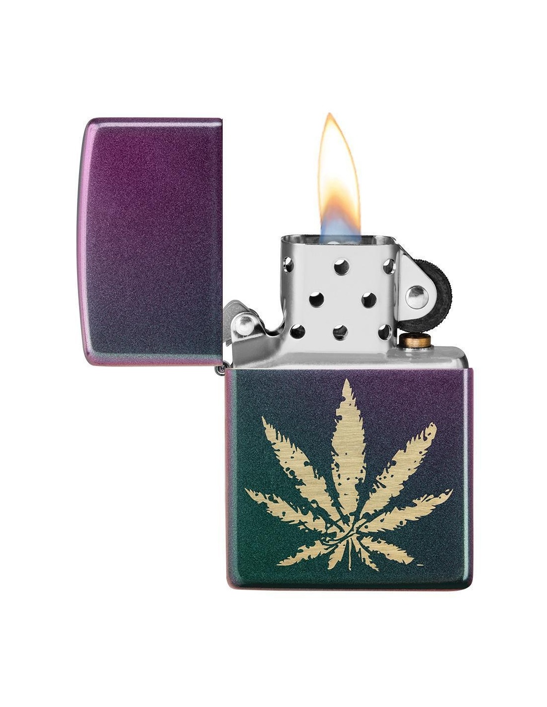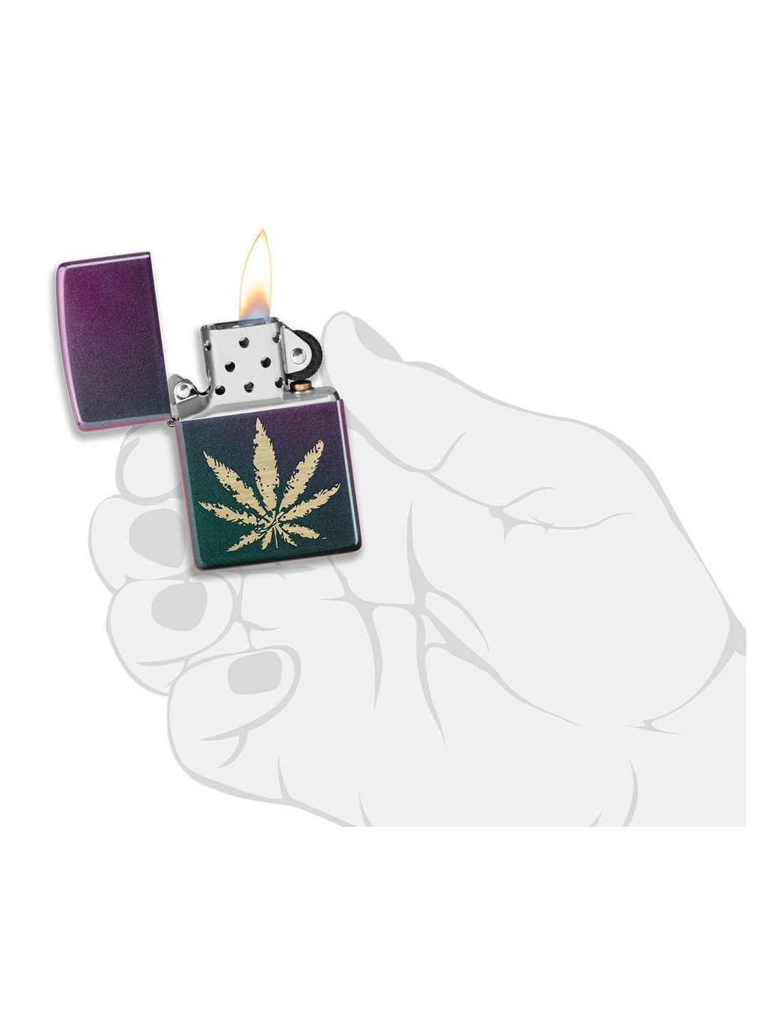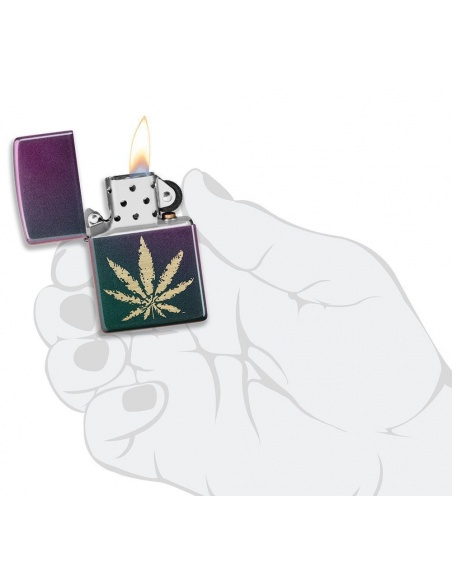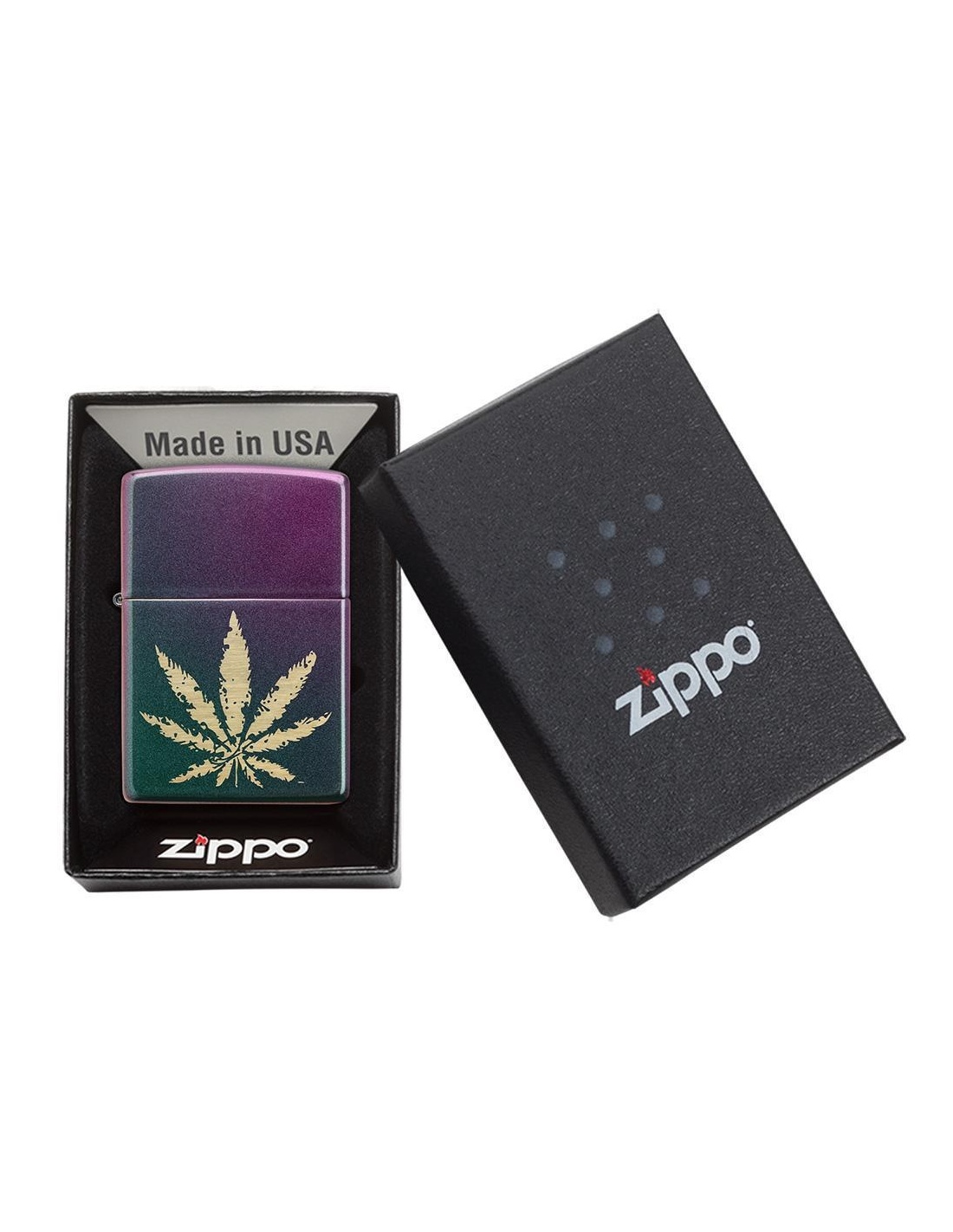 A Zippo 49185 Iridescent Marijuana Leaf öngyújtó az Egyesült Államokban gyártott termék, a Pennsylvania-ban levő híres badfordi Zippo Manufacturing Company cég által. A Zippo öngyújtók kiváltképpen a Második Világháború idején váltak népszerűvé, amikor kizárólag az amerikai hadsereg részére gyártották őket és jelen pillanatban a Zippo öngyújtó, egy amerikai katona alapfelszereltségének tartozéka. A 60-as években a koncertek kedvelői Zippo gyújtókat gyújtottak meg és emeltek a magasba, a színpadon levő művészek üdvözlése végett, ezt a gesztust ”Zippo Moment”-ként emlegették. A Zippo öngyújtók újratölthetőek, időállóak és kedvezőtlen szeles feltételek mellett is meggyújthatóak. Ma már a Zippo öngyújtókat több mint 100 országban forgalmazzák és számos lelkes gyűjtő részére gyűjteménydarabbá vált.