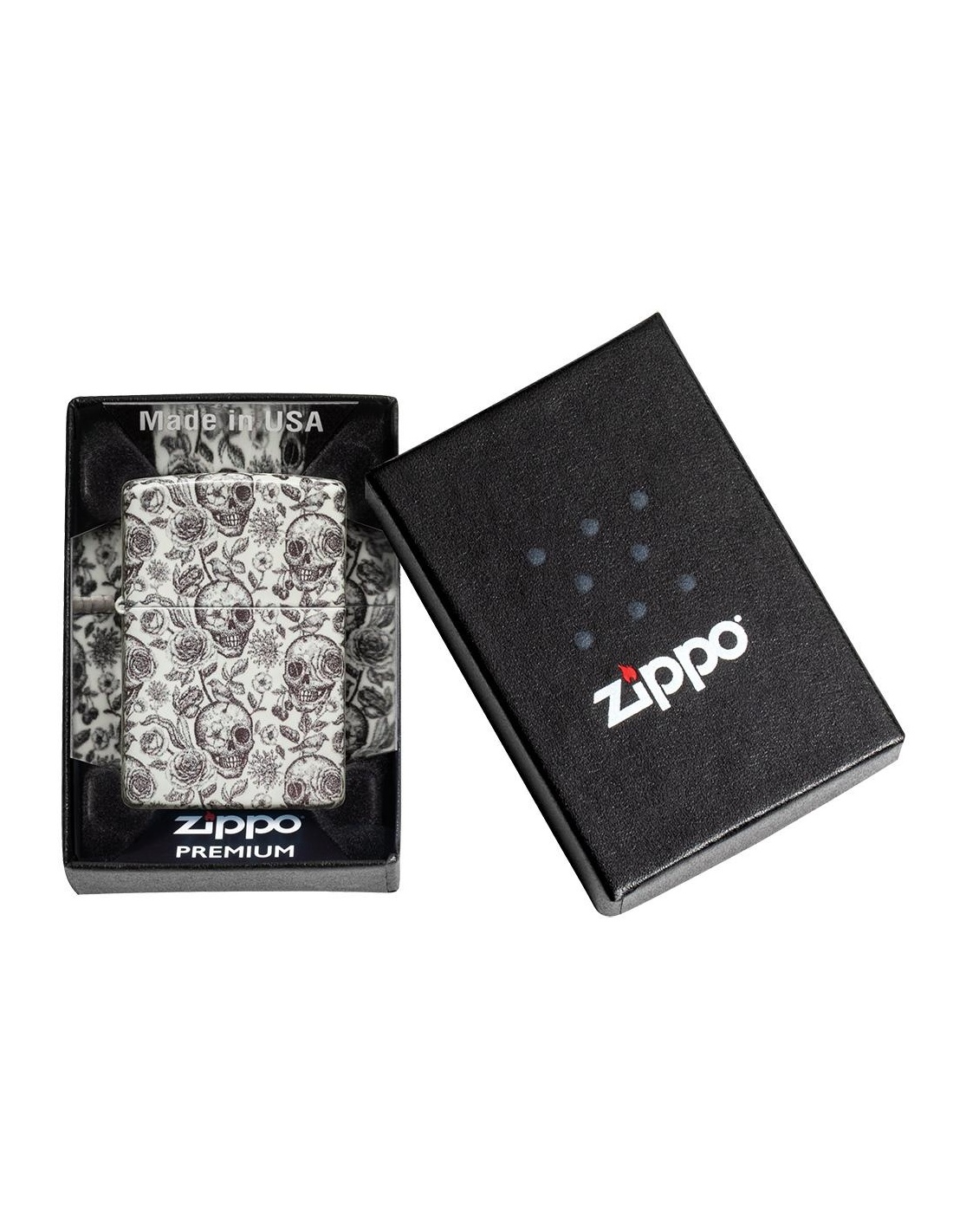 A Zippo 49458 Glow in the Dark Skulls öngyújtó az Egyesült Államokban gyártott termék, a Pennsylvania-ban levő híres badfordi Zippo Manufacturing Company cég által. A Zippo öngyújtók kiváltképpen a Második Világháború idején váltak népszerűvé, amikor kizárólag az amerikai hadsereg részére gyártották őket és jelen pillanatban a Zippo öngyújtó, egy amerikai katona alapfelszereltségének tartozéka. A 60-as években a koncertek kedvelői Zippo gyújtókat gyújtottak meg és emeltek a magasba, a színpadon levő művészek üdvözlése végett, ezt a gesztust ”Zippo Moment”-ként emlegették. A Zippo öngyújtók újratölthetőek, időállóak és kedvezőtlen szeles feltételek mellett is meggyújthatóak. Ma már a Zippo öngyújtókat több mint 100 országban forgalmazzák és számos lelkes gyűjtő részére gyűjteménydarabbá vált.