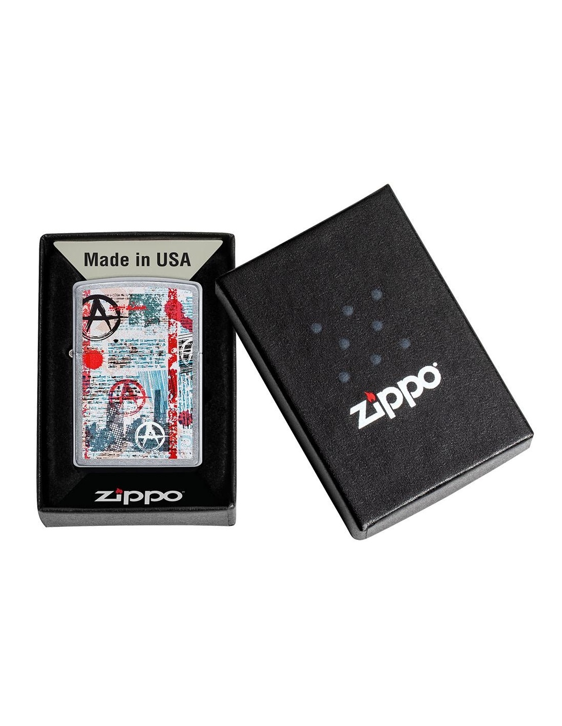 A Zippo 49662 Anarchy Design öngyújtó az Egyesült Államokban gyártott termék, a Pennsylvania-ban levő híres badfordi Zippo Manufacturing Company cég által. A Zippo öngyújtók kiváltképpen a Második Világháború idején váltak népszerűvé, amikor kizárólag az amerikai hadsereg részére gyártották őket és jelen pillanatban a Zippo öngyújtó, egy amerikai katona alapfelszereltségének tartozéka. A 60-as években a koncertek kedvelői Zippo gyújtókat gyújtottak meg és emeltek a magasba, a színpadon levő művészek üdvözlése végett, ezt a gesztust ”Zippo Moment”-ként emlegették. A Zippo öngyújtók újratölthetőek, időállóak és kedvezőtlen szeles feltételek mellett is meggyújthatóak. Ma már a Zippo öngyújtókat több mint 100 országban forgalmazzák és számos lelkes gyűjtő részére gyűjteménydarabbá vált.