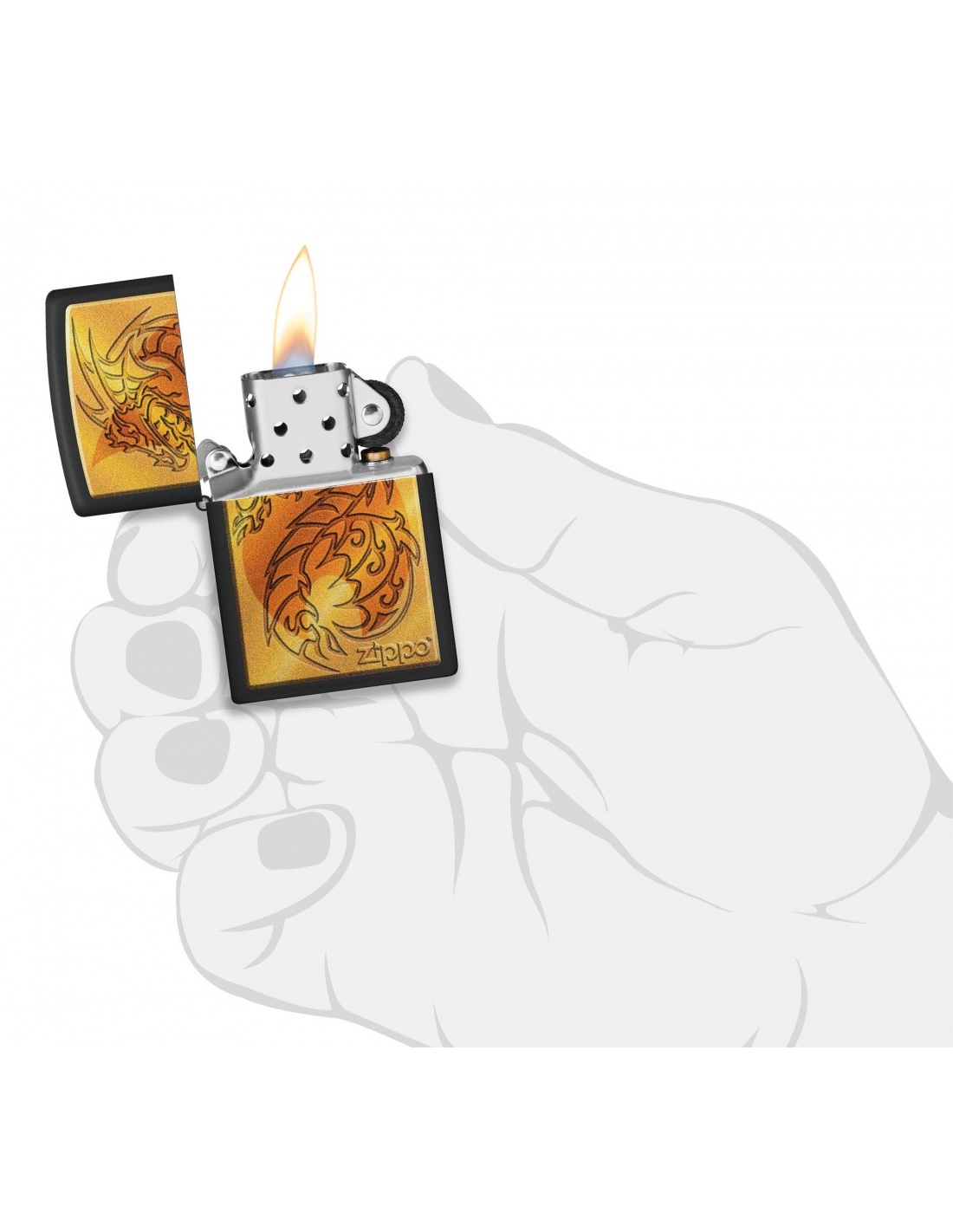 A Zippo 48364 Flame and Dragon öngyújtó öngyújtó az Egyesült Államokban gyártott termék, a Pennsylvania-ban levő híres badfordi Zippo Manufacturing Company cég által. A Zippo öngyújtók kiváltképpen a Második Világháború idején váltak népszerűvé, amikor kizárólag az amerikai hadsereg részére gyártották őket és jelen pillanatban a Zippo öngyújtó, egy amerikai katona alapfelszereltségének tartozéka. A 60-as években a koncertek kedvelői Zippo gyújtókat gyújtottak meg és emeltek a magasba, a színpadon levő művészek üdvözlése végett, ezt a gesztust ”Zippo Moment”-ként emlegették. A Zippo öngyújtók újratölthetőek, időállóak és kedvezőtlen szeles feltételek mellett is meggyújthatóak. Ma már a Zippo öngyújtókat több mint 100 országban forgalmazzák és számos lelkes gyűjtő részére gyűjteménydarabbá vált.