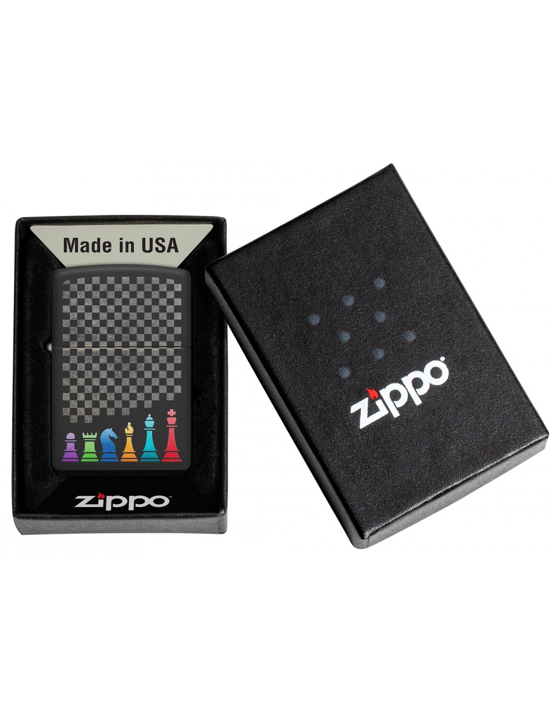 A Zippo 48662 Colored Chess Pieces öngyújtó öngyújtó az Egyesült Államokban gyártott termék, a Pennsylvania-ban levő híres badfordi Zippo Manufacturing Company cég által. A Zippo öngyújtók kiváltképpen a Második Világháború idején váltak népszerűvé, amikor kizárólag az amerikai hadsereg részére gyártották őket és jelen pillanatban a Zippo öngyújtó, egy amerikai katona alapfelszereltségének tartozéka. A 60-as években a koncertek kedvelői Zippo gyújtókat gyújtottak meg és emeltek a magasba, a színpadon levő művészek üdvözlése végett, ezt a gesztust ”Zippo Moment”-ként emlegették. A Zippo öngyújtók újratölthetőek, időállóak és kedvezőtlen szeles feltételek mellett is meggyújthatóak. Ma már a Zippo öngyújtókat több mint 100 országban forgalmazzák és számos lelkes gyűjtő részére gyűjteménydarabbá vált.