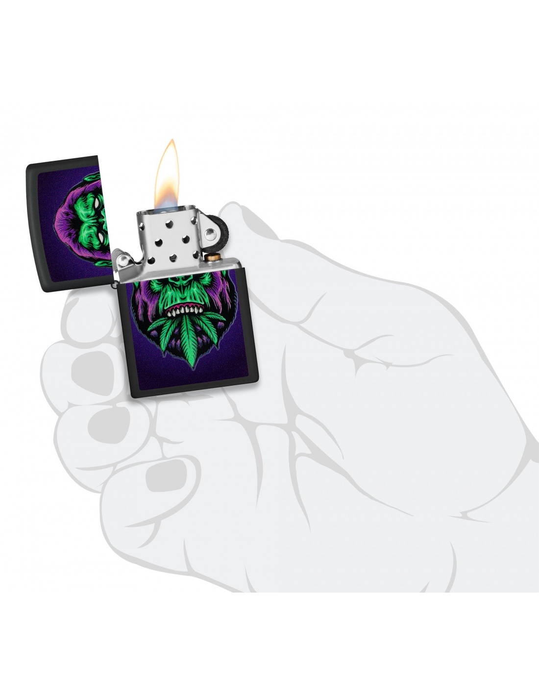 A Zippo 48585 Cannabis Gorilla öngyújtó öngyújtó az Egyesült Államokban gyártott termék, a Pennsylvania-ban levő híres badfordi Zippo Manufacturing Company cég által. A Zippo öngyújtók kiváltképpen a Második Világháború idején váltak népszerűvé, amikor kizárólag az amerikai hadsereg részére gyártották őket és jelen pillanatban a Zippo öngyújtó, egy amerikai katona alapfelszereltségének tartozéka. A 60-as években a koncertek kedvelői Zippo gyújtókat gyújtottak meg és emeltek a magasba, a színpadon levő művészek üdvözlése végett, ezt a gesztust ”Zippo Moment”-ként emlegették. A Zippo öngyújtók újratölthetőek, időállóak és kedvezőtlen szeles feltételek mellett is meggyújthatóak. Ma már a Zippo öngyújtókat több mint 100 országban forgalmazzák és számos lelkes gyűjtő részére gyűjteménydarabbá vált.