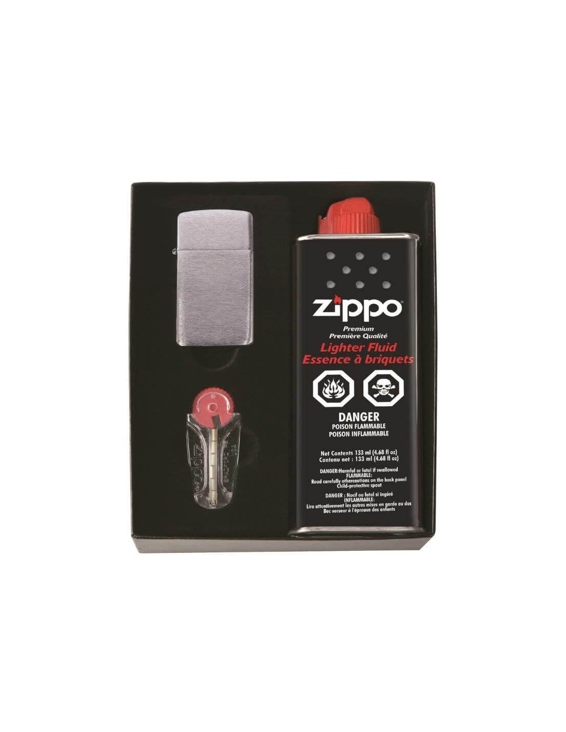 A Ajándék szett Zippo 1600 öngyújtó + benzin 125 ml + tűzkö 50S-1600 az Egyesült Államokban gyártott termék, a Pennsylvania-ban levő híres badfordi Zippo Manufacturing Company cég által. A Zippo öngyújtók kiváltképpen a Második Világháború idején váltak népszerűvé, amikor kizárólag az amerikai hadsereg részére gyártották őket és jelen pillanatban a Zippo öngyújtó, egy amerikai katona alapfelszereltségének tartozéka. A 60-as években a koncertek kedvelői Zippo gyújtókat gyújtottak meg és emeltek a magasba, a színpadon levő művészek üdvözlése végett, ezt a gesztust ”Zippo Moment”-ként emlegették. A Zippo öngyújtók újratölthetőek, időállóak és kedvezőtlen szeles feltételek mellett is meggyújthatóak. Ma már a Zippo öngyújtókat több mint 100 országban forgalmazzák és számos lelkes gyűjtő részére gyűjteménydarabbá vált.